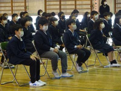式の後、全校表彰をリモート形式で行いました。