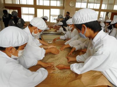 5年生は、7月12日(月)から7月14日(水)までの3日間でみそ作り体験をしました。