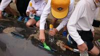 1年生は「きれいに さいてね」の学習で、アサガオを育てます。今日、自分の鉢にアサガオの種を植え付けました。