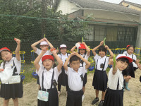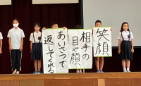 生活委員会のみんなの立派なあいさつの後、高学年、中学年、低学年ごとに、あいさつの練習をしました。みんな暑さが吹き飛ぶような大きな声であいさつをすることができました。📣👍